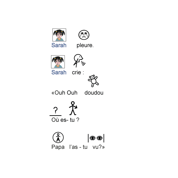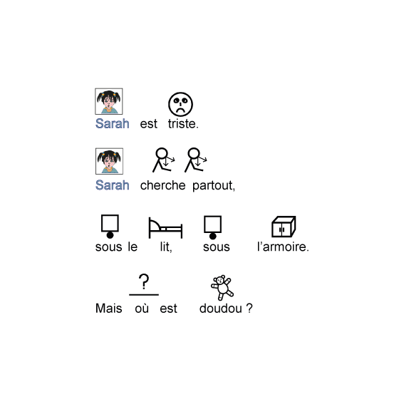 Sarah a perdu son doudou. Elle part à sa recherche et rencontre sur son chemin des animaux .